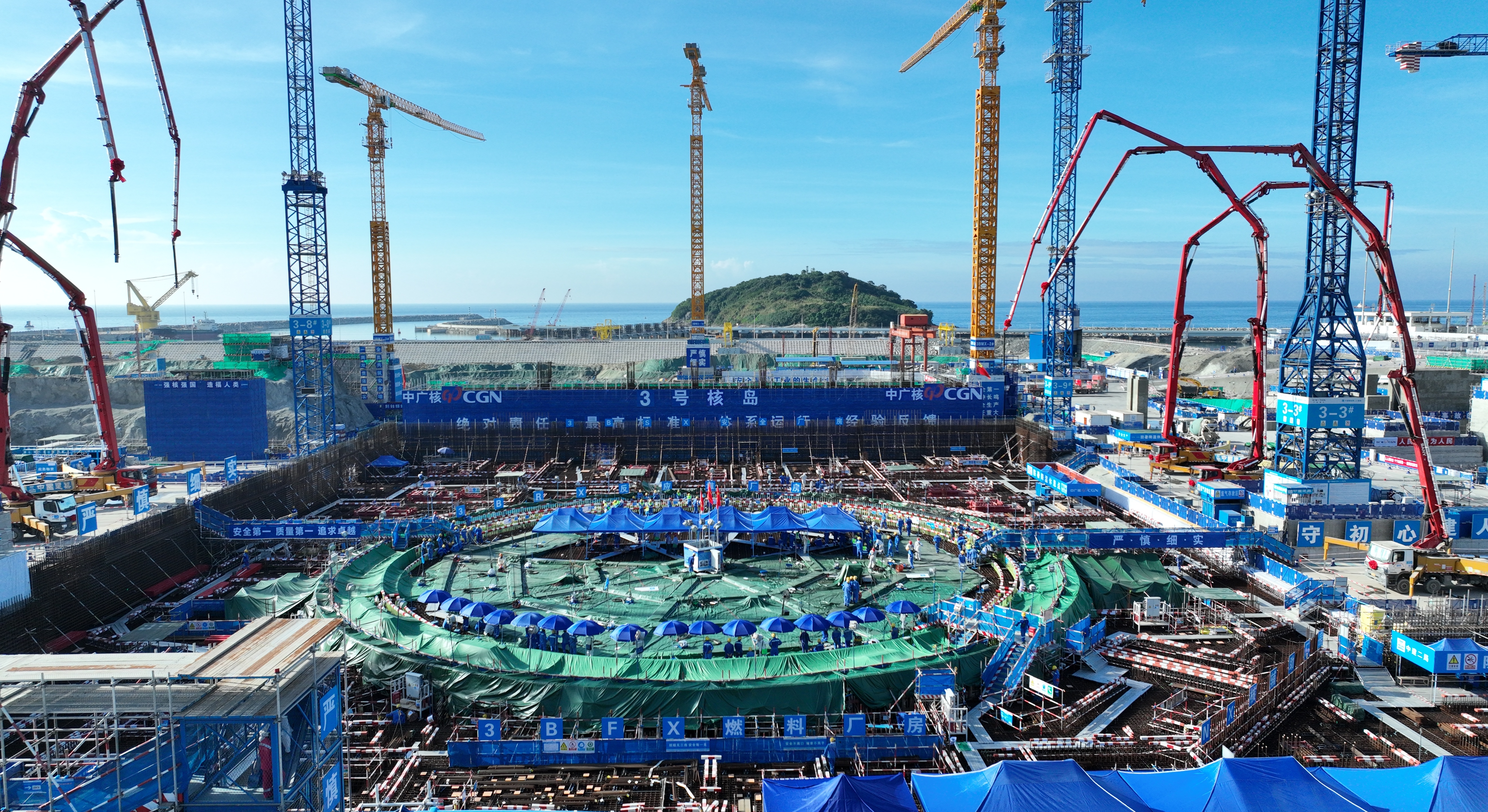 6月10日上午,中廣核廣東太平嶺核電廠3號機(jī)組核島第一罐混凝土開始澆筑。惠州日報記者黃鑫威 謝寶樹 攝