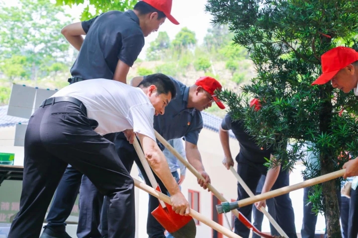 活動現(xiàn)場,大家團結(jié)協(xié)作、干勁十足,揮鍬鏟土、扶苗填坑、提桶澆水,種下“植物界的大熊貓”之稱的華蓋木、“木蘭科木蓮屬中的佼佼者”之稱的亮葉木蓮、“植物抗生素”之稱的猴耳環(huán),以及望天樹、桂花等苗木400多株。