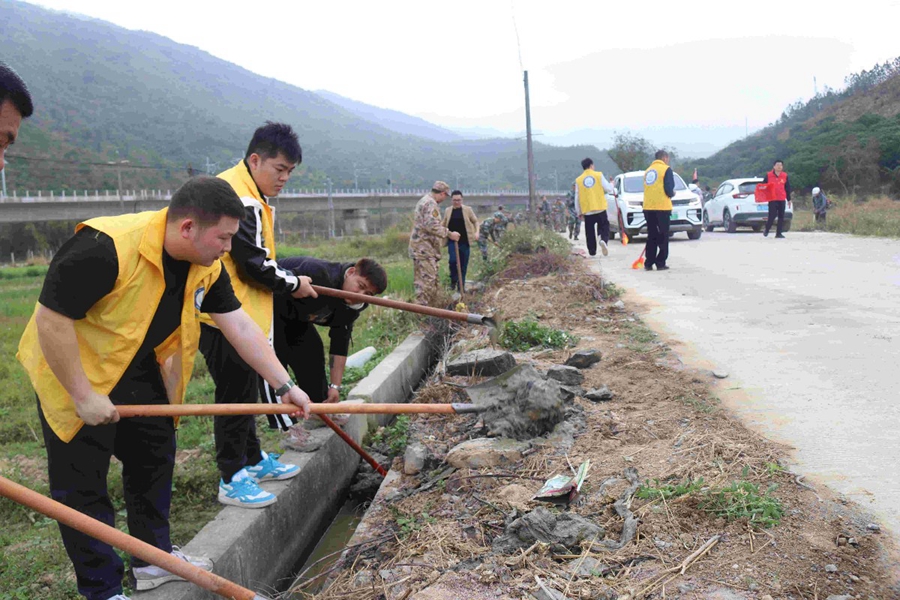 日前,惠東縣高潭鎮(zhèn)召集志愿者約80人舉行“植綠清淤”主題黨日活動(dòng)。活動(dòng)當(dāng)天,在高潭鎮(zhèn)水口村龍珠貴植樹(shù)點(diǎn),志愿者們揮鍬鏟土、挖坑運(yùn)苗、栽植新綠、培土澆水……一派忙碌景象。同時(shí),志愿者們還到高潭鎮(zhèn)黃沙村小學(xué)前開(kāi)展清淤行動(dòng)。黨員干部和志愿者為鄉(xiāng)村路基、溝渠清落葉、鏟淤泥、撈雜物、除雜草,保障春耕灌溉,提升農(nóng)村人居環(huán)境質(zhì)量。