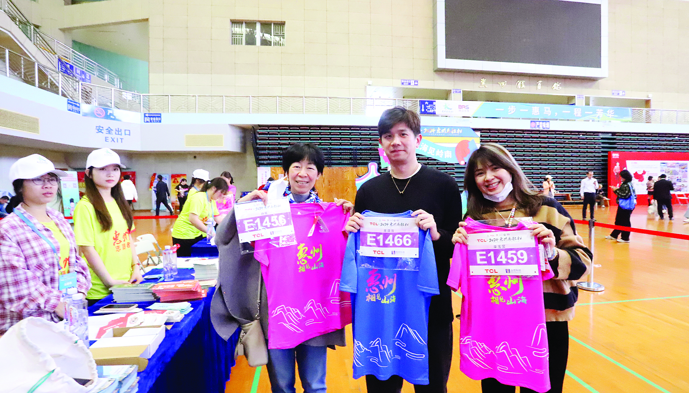 3月15日上午,惠州首屆馬拉松參賽選手領(lǐng)到參賽包并展示參賽服。惠州日?qǐng)?bào)記者鐘暢新 攝