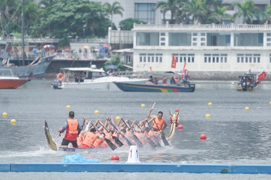 起步爭(zhēng)先、加速追逐、并駕超越、拼搏反超……海面上,龍舟競(jìng)渡,選手們揮槳如飛,一路劈波斬浪,向著終點(diǎn)奮力沖刺。岸上,人頭攢動(dòng),綿綿細(xì)雨也絲毫沒(méi)有影響市民觀賽的熱情,加油吶喊聲此起彼伏,氣氛十分熱烈。競(jìng)技的激情與觀眾的熱情交織在一起,令人熱血沸騰。