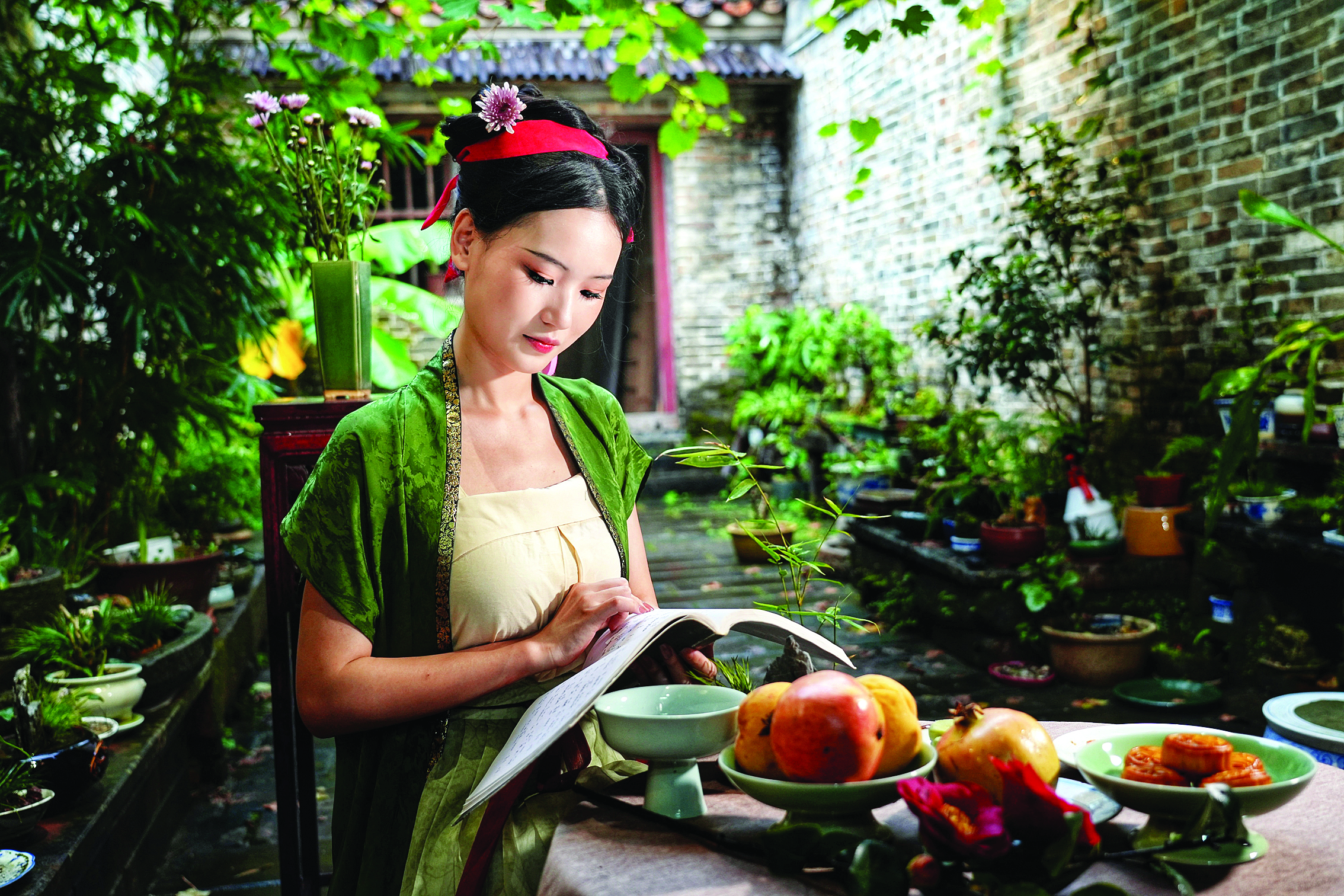 參加活動(dòng)的共有十多人,圈圈、飄飄、吉吉、七郎、嘉嘉、辰辰、老徐、香香等,他們都是漢服發(fā)燒友,常常聚在一起搞活動(dòng)。吉吉是這次活動(dòng)的發(fā)起者,她說:“中秋節(jié)到了,我們也來復(fù)原宋代古人是如何過中秋的,樂一樂嘛!”演員們分別手持菊花、搖著扇子、品著月餅,傾情暢談,神態(tài)不同,姿勢(shì)各異,極富古風(fēng)韻味。