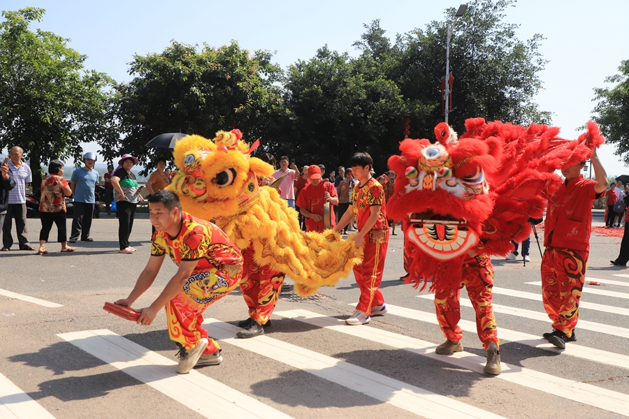 觀音閣鎮(zhèn)菱湖村舞獅文化至今已有100多年的歷史。舞獅隊以“聲”“形”特有的形式,明快富有朝氣的節(jié)奏和獨特的藝術(shù)走形,體現(xiàn)了廣大農(nóng)民熱情奔放、粗獷豪爽的精神風(fēng)貌。十字路麒麟隊也同樣有著悠久歷史。在巡游中,舞麒麟表演根據(jù)鼓點節(jié)奏而變化,引起了群眾的熱烈反響。而源自平安醒獅隊的蕭氏酷獅團,時而跳躍、時而疾走,時而威武霸氣、時而撒嬌調(diào)皮,吸引眾多群眾拍照互動。