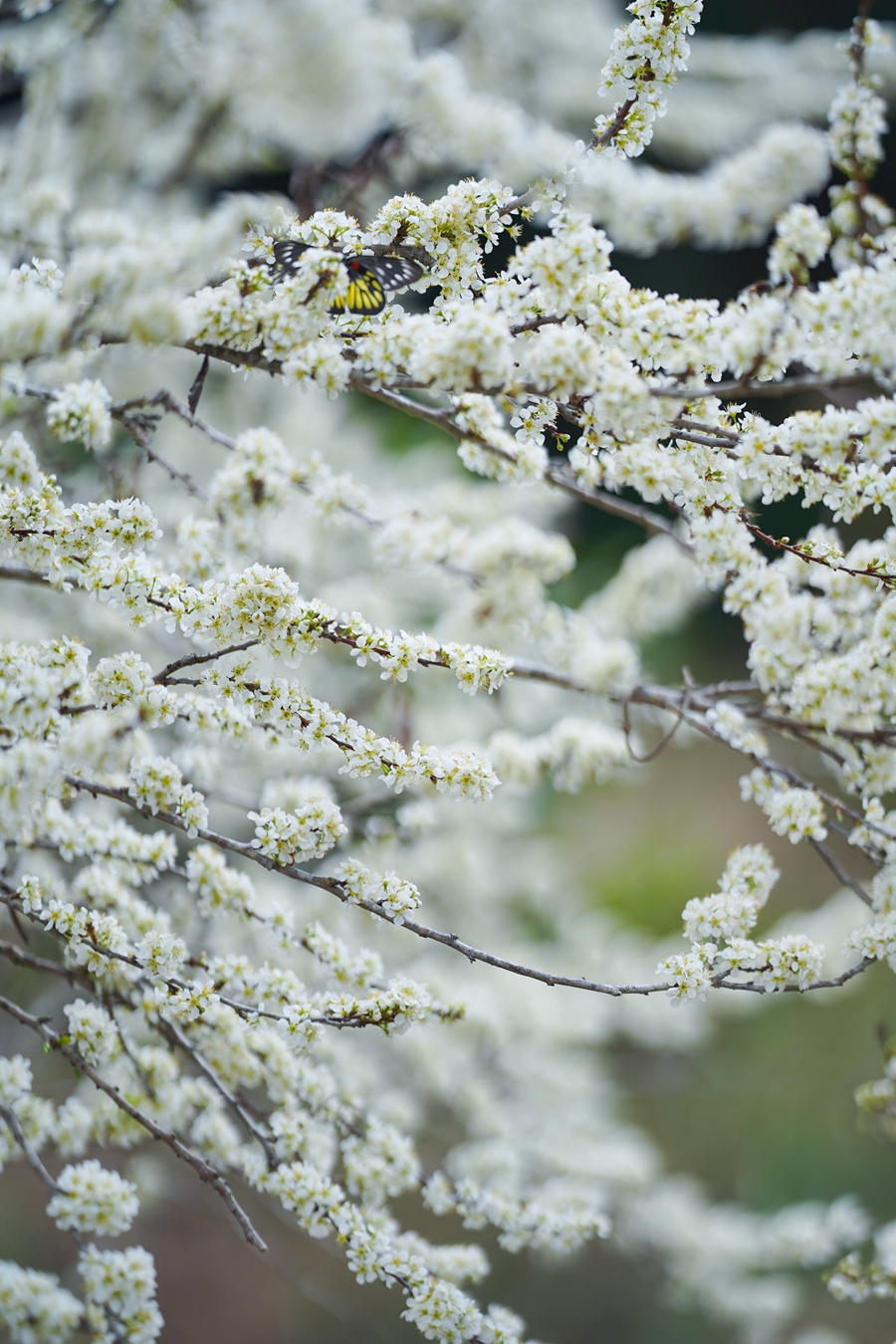 走進(jìn)李子園,淡淡花香撲鼻而來,蜜蜂的嗡嗡聲不絕于耳,五顏六色的蝴蝶在不停地飛舞,裝點(diǎn)著這一片雪白的花海。