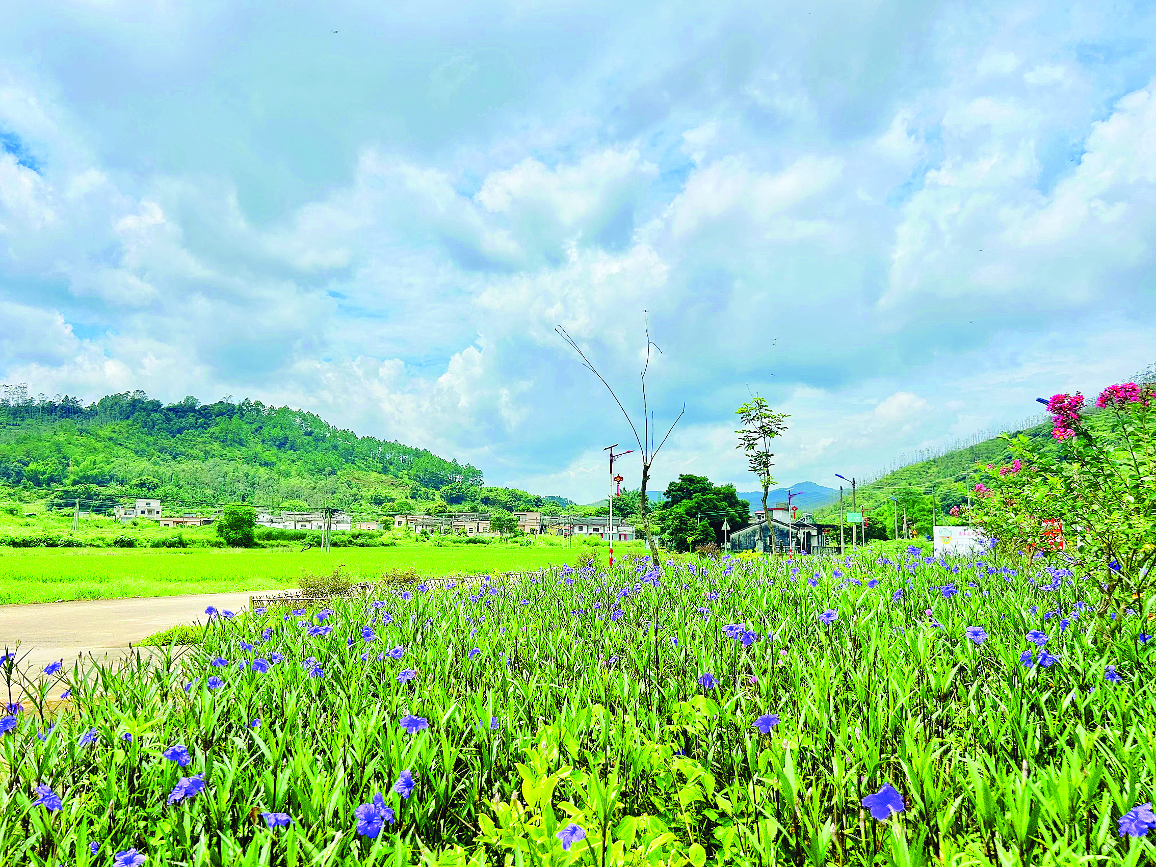 大圍村村道旁成片鮮花盛開,環(huán)境優(yōu)美。