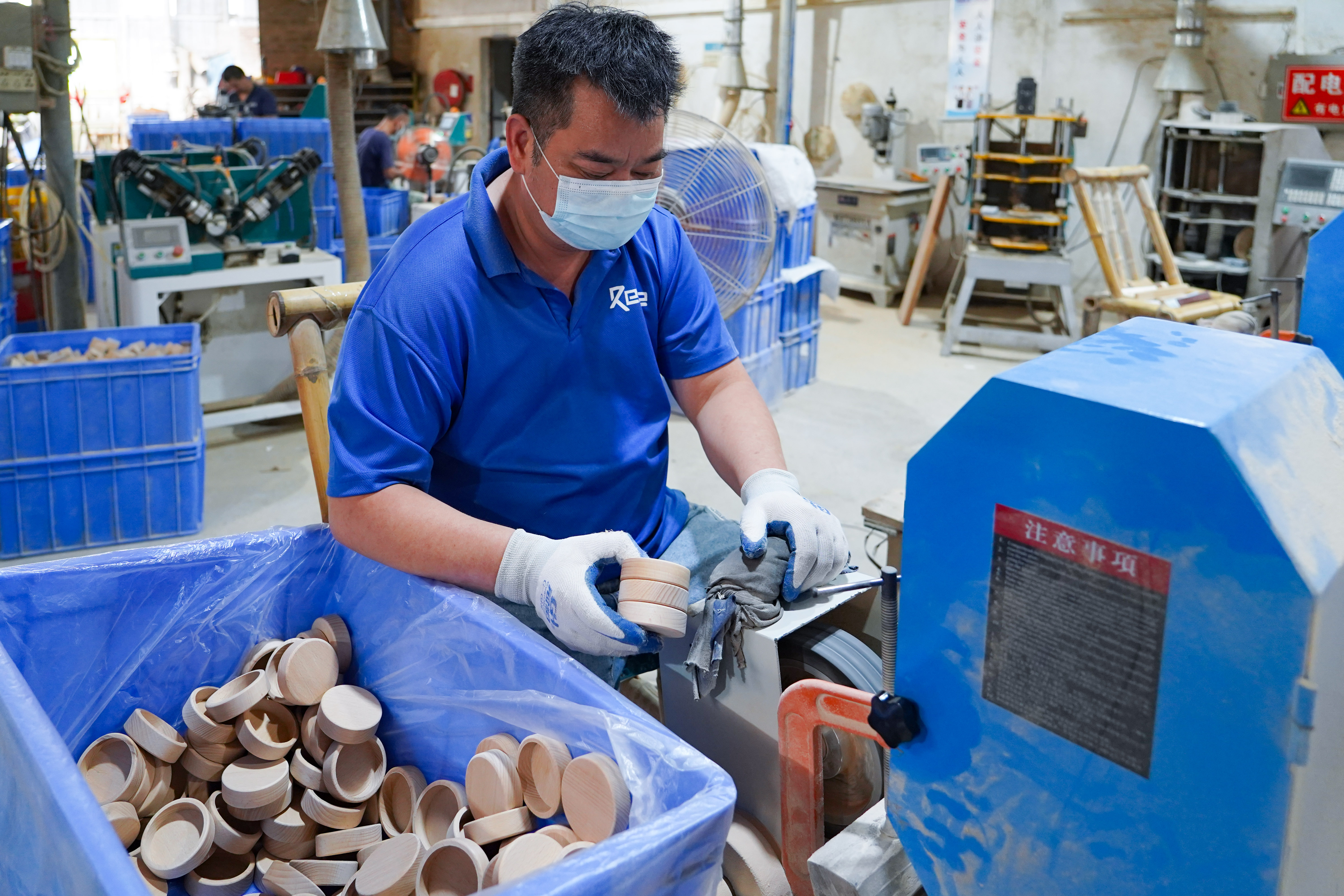 工人在加工竹木制品。