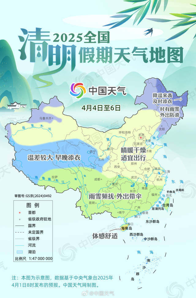 市氣象臺提醒,清明假期前期晴朗干燥,祭祖、踏青郊游等戶外活動需嚴(yán)防山火,做好火源管控;后期轉(zhuǎn)雨霧天氣,部分時段能見度較低,道路濕滑,需注意交通安全。