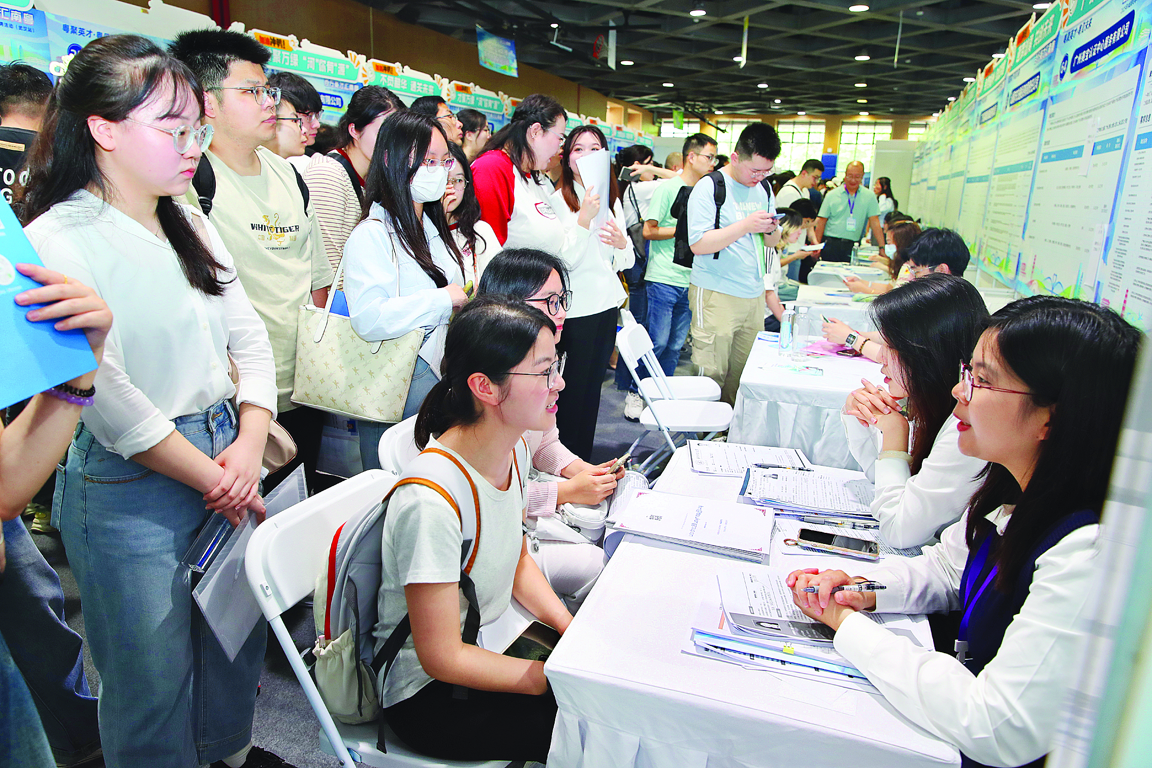 求職學子熱情高漲,企業(yè)招聘人員忙個不停。“短短兩個小時,我們就收到了200多份簡歷,想過會受歡迎,但從沒想過會這么火。”TCL科技集團股份有限公司校招經理秦譽銘說,此次招聘的100多個崗位以研發(fā)智造、材料化學等為主,投遞簡歷的有碩士,也有博士,招聘效果非常好。