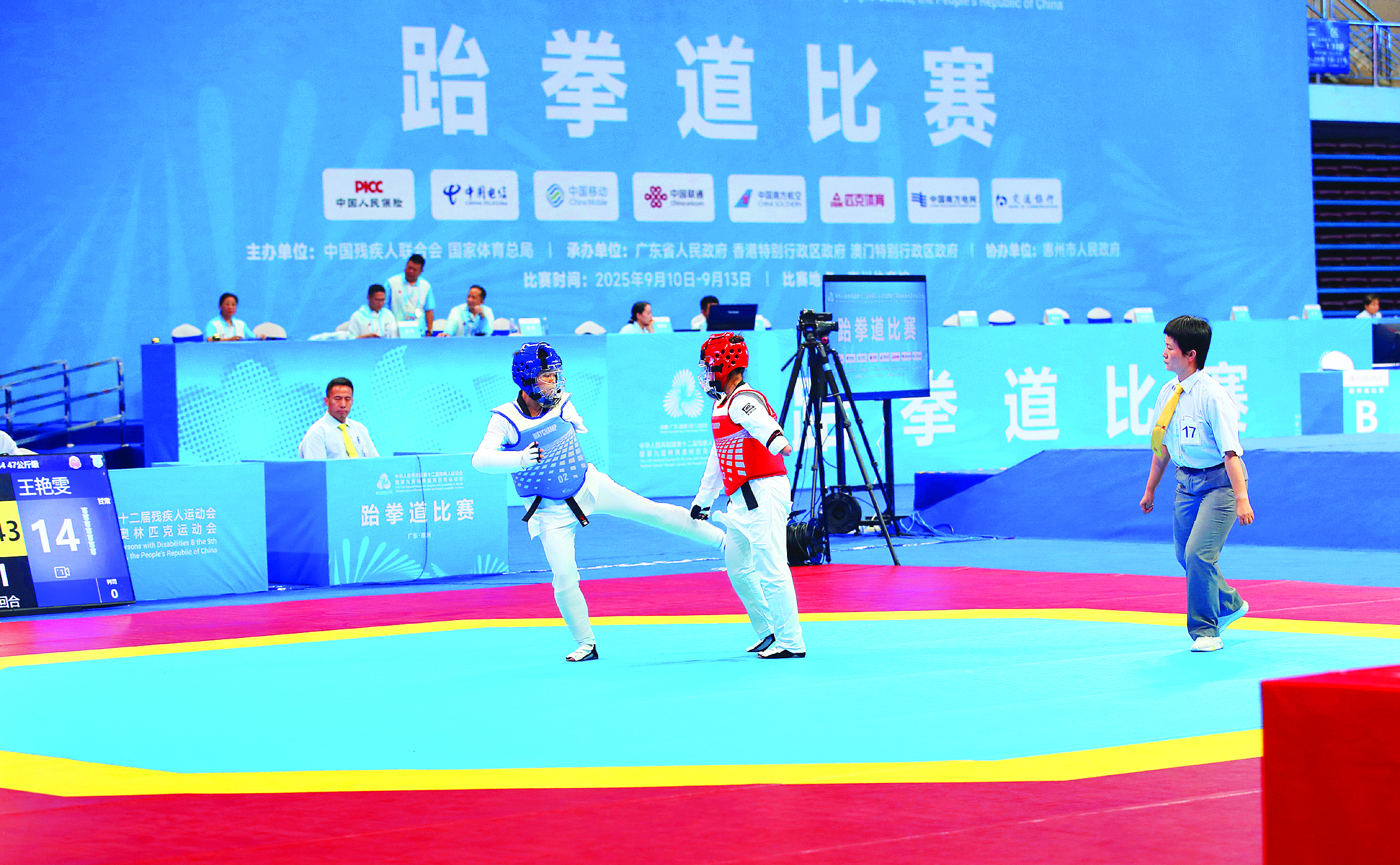 9月10日,全國第十二屆殘疾人運(yùn)動(dòng)會(huì)暨第九屆特殊奧林匹克運(yùn)動(dòng)會(huì)(以下簡(jiǎn)稱“殘?zhí)貖W會(huì)”)跆拳道比賽在惠州體育館正式拉開序幕。本場(chǎng)比賽作為惠州賽區(qū)首個(gè)殘?zhí)貖W會(huì)項(xiàng)目,吸引了來自全國各地的23支隊(duì)伍共261名運(yùn)動(dòng)員參賽,將在4天賽程中角逐32個(gè)項(xiàng)目的榮譽(yù)。