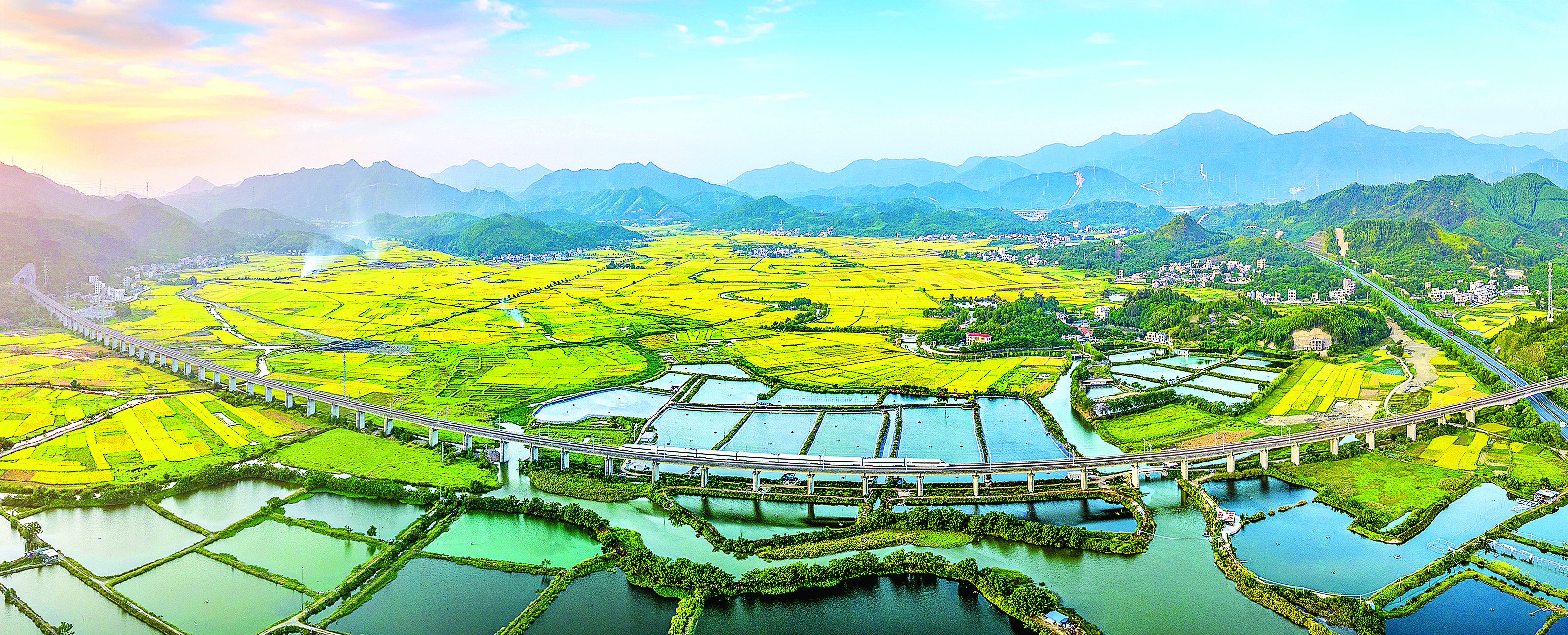 廈深高鐵穿過稔平半島金黃的稻田,共同構(gòu)成一幅動人畫卷。 攝影:劉麗