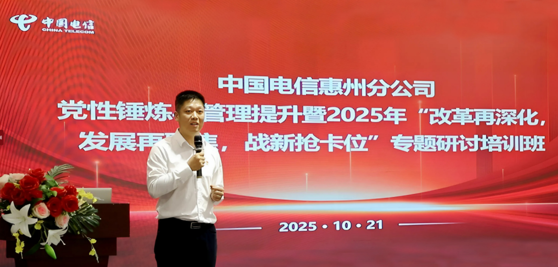 惠州電信主要負(fù)責(zé)人蘆陳輝同志在干部黨性錘煉培訓(xùn)班作開班講話。