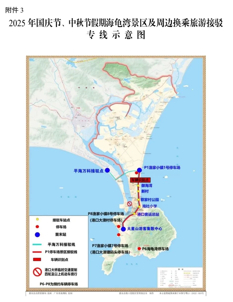 (三)專線接駁服務(wù)。實(shí)施優(yōu)化交通管理期間,將提供2條有償服務(wù)旅游接駁專線,供游客乘坐前往海龜灣景區(qū)及周邊區(qū)域。咨詢熱線:0752-8562886。