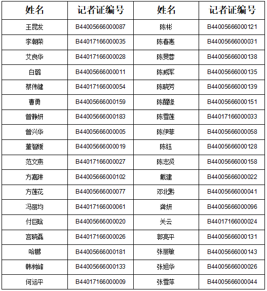 新聞?dòng)浾咦C換證人員名單公示