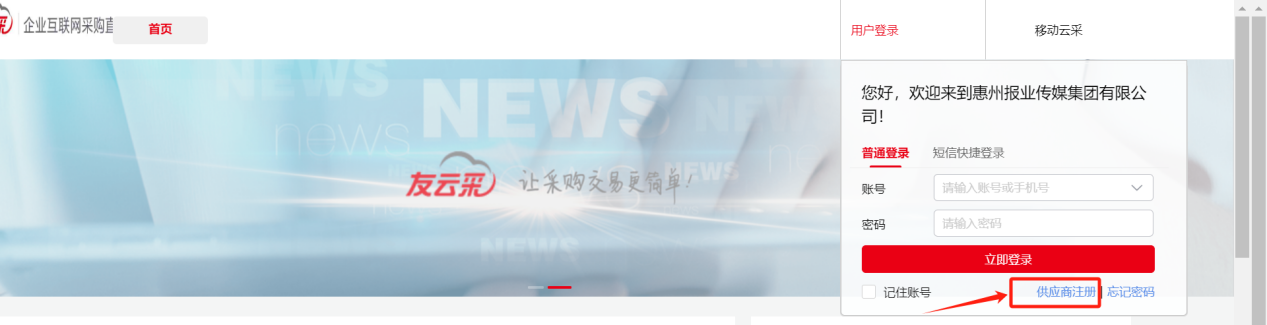 2、點擊用戶登錄,點擊供應(yīng)商注冊 。