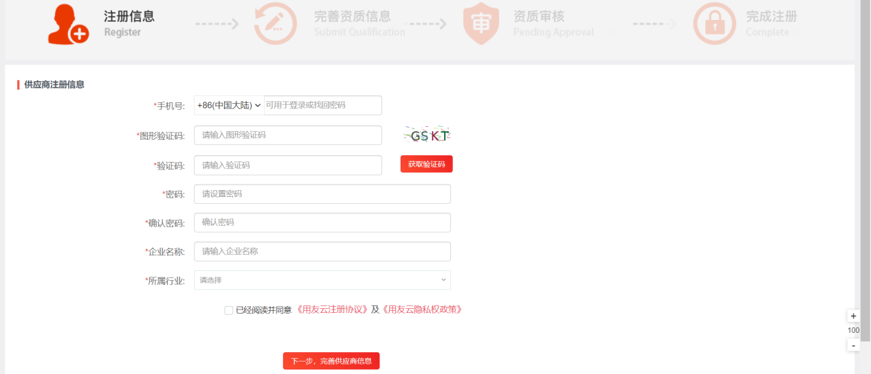 供應(yīng)商網(wǎng)上自主注冊申請。