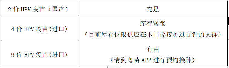 惠陽秋長疫苗庫存信息