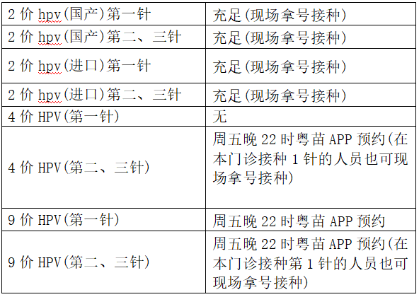 新一輪九價(jià)HPV疫苗已開放九價(jià)宮頸癌疫苗首針免預(yù)約接種(盧屋路接種點(diǎn)、人民六路接種點(diǎn)均有疫苗),無需預(yù)約,帶身份證即可接種。接種當(dāng)天工作時(shí)間均可在三樓自助取號(hào)。