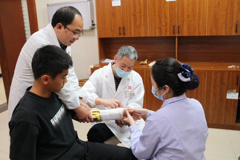 “中醫(yī)是骨傷關(guān)節(jié)創(chuàng)傷科的一大亮點特色,我們往往采取‘手法閉合復(fù)位、輔以小夾板固定、動靜結(jié)合、中藥內(nèi)服外敷’等具有華康特色的治療手法,患者不開刀就能治骨傷,經(jīng)過臨床實踐證明,確實取得良好療效。”骨傷關(guān)節(jié)創(chuàng)傷科主任劉海亮這樣說。