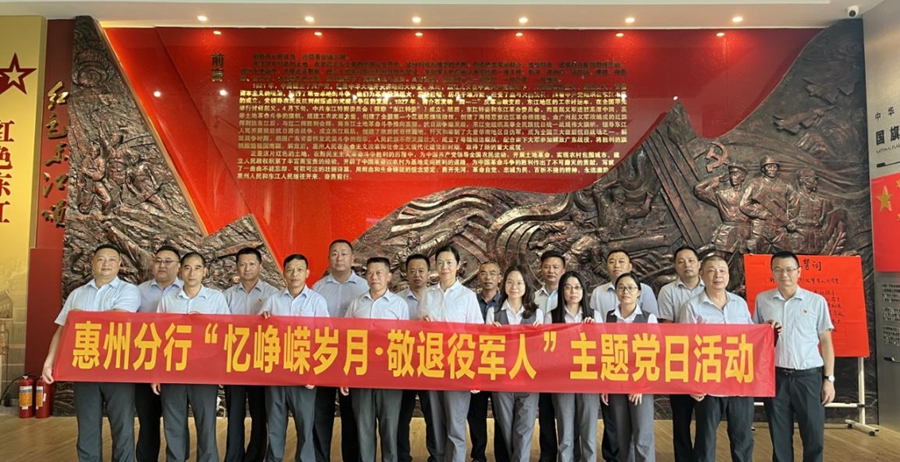 習近平總書記強調:“要關愛退役軍人,他們?yōu)楸<倚l(wèi)國作出了貢獻”。為慶祝中國人民解放軍建軍96周年,傳承弘揚紅色基因,7月31日,廣發(fā)銀行惠州分行組織退役軍人前往惠州市惠城區(qū)紅色東江五育實踐中心開展“憶崢嶸歲月,敬退伍軍人”主題黨日活動。