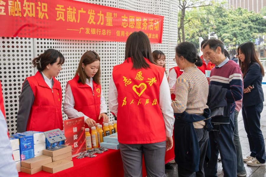 在位于廣州天河區(qū)的花城廣場黨群服務站,廣發(fā)銀行黨員干部組成一支志愿者服務隊,為市民帶來了金融知識、防范電信網絡詐騙、征信知識等一系列金融消保教育宣傳“大餐”。