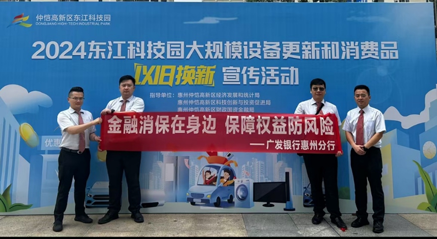 為不斷提升社會公眾金融素養(yǎng),構建和諧的金融消費環(huán)境,廣發(fā)銀行惠州分行積極履行社會責任,于5月18日契合東江科技園消費品以舊換新宣傳活動。