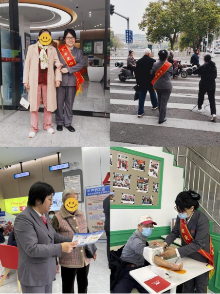 做優(yōu)適老服務(wù),鋪就銀發(fā)無(wú)憂“暖心路”。“阿婆慢行,我扶您過(guò)斑馬線”,在熙熙攘攘的南壇路口,支行長(zhǎng)者服務(wù)專員穿梭于網(wǎng)點(diǎn)周邊街道,主動(dòng)攙扶護(hù)送行動(dòng)不便的老年客戶過(guò)馬路,用“一扶一護(hù)”詮釋金融溫度。當(dāng)看到張奶奶因路面濕滑險(xiǎn)些摔倒時(shí),大堂經(jīng)理立即上前攙扶,并開(kāi)通“綠色通道”,全程陪同辦理存取款業(yè)務(wù)。“你們銀行的服務(wù)真是暖心!”張奶奶拉著工作人員的手連連道謝。此外,網(wǎng)點(diǎn)內(nèi)還設(shè)置血壓測(cè)量區(qū),以專業(yè)設(shè)備為有需求的客戶測(cè)量血壓。一位老年客戶表示:“銀行不僅幫我管錢,還關(guān)心我的健康,這樣的服務(wù)太實(shí)在了!”