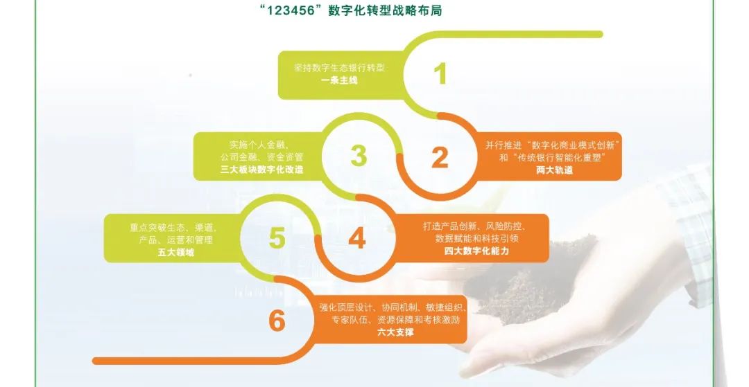 “風(fēng)控護(hù)行”離不開科技賦能。郵儲(chǔ)銀行將數(shù)字化轉(zhuǎn)型作為全行轉(zhuǎn)型發(fā)展的重點(diǎn)戰(zhàn)略舉措,探索符合自身特性的轉(zhuǎn)型方式,在探索中前進(jìn),在變革中發(fā)展,規(guī)劃了“123456”數(shù)字化轉(zhuǎn)型戰(zhàn)略布局,全力推動(dòng)“數(shù)字生態(tài)銀行”建設(shè)。