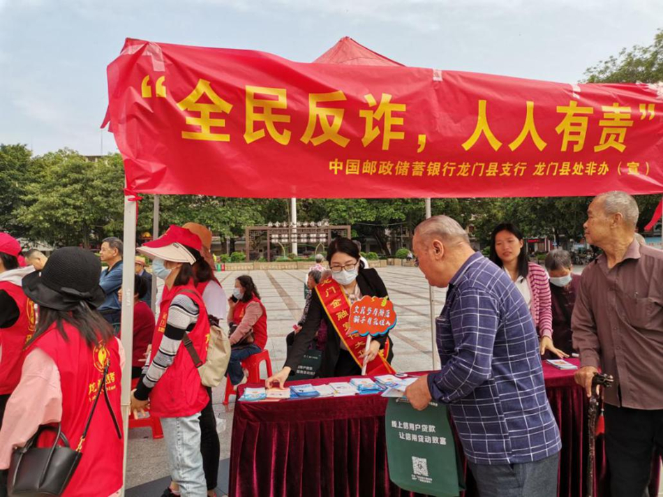 郵儲銀行龍門縣支行“全民反詐”宣傳活動現(xiàn)場。