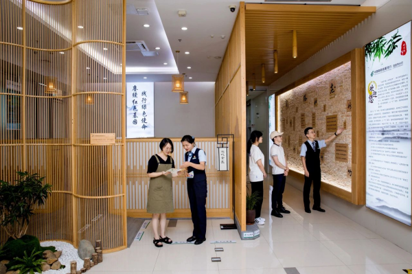 在適老化建設方面,充分考慮老年客戶群體需求,對網(wǎng)點進行適老化服務改造,同時設立“安享金暉”俱樂部活動區(qū),提升老年人服務體驗。