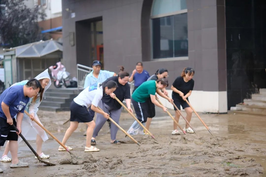 郵儲(chǔ)銀行北京房山區(qū)西潞支行工作人員齊心協(xié)力清理淤泥