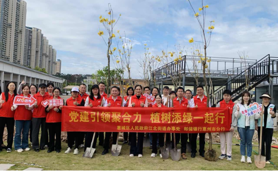 為深入學(xué)習(xí)貫徹習(xí)近平生態(tài)文明思想和習(xí)近平總書記視察廣東重要講話、重要指示精神,進(jìn)一步貫徹落實(shí)省委、市委關(guān)于推進(jìn)“百千萬工程”、綠美廣東生態(tài)建設(shè)和全省鄉(xiāng)村綠化三年計(jì)劃的部署要求,3月12日,郵儲(chǔ)銀行惠州市分行聯(lián)合惠城區(qū)人民政府江北街道辦事處開展“黨建引領(lǐng)聚合力,植樹添綠一起行”主題植樹活動(dòng)。20余名黨員干部職工齊聚惠城區(qū)江北街道惠民大道35號(hào)街區(qū)溪流蕓,以“黨建紅”引領(lǐng)“生態(tài)綠”,共同種下黃花風(fēng)鈴樹苗、香樟樹苗等,用文明健康、綠色環(huán)保的方式引領(lǐng)鄉(xiāng)風(fēng)文明新風(fēng),助力“百千萬工程”。