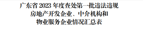 近日,省住建廳發(fā)布《關(guān)于2023年度查處第一批違法違規(guī)房地產(chǎn)開(kāi)發(fā)企業(yè)、中介機(jī)構(gòu)和物業(yè)服務(wù)企業(yè)名單的公告》(以下簡(jiǎn)稱《公告》),全省共計(jì)90家房地產(chǎn)行業(yè)企業(yè)因違法違規(guī)被通報(bào)批評(píng)。其中,惠州企業(yè)29家,涉及寶悅豪庭、讀者文化園、榕溪花園、富力尚悅居等多個(gè)樓盤項(xiàng)目。