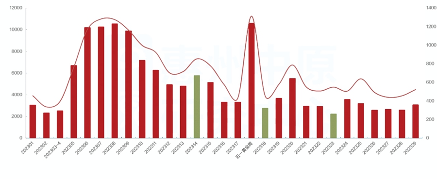 2023年上半年惠州市重點項目每周來訪認(rèn)購走勢圖。
