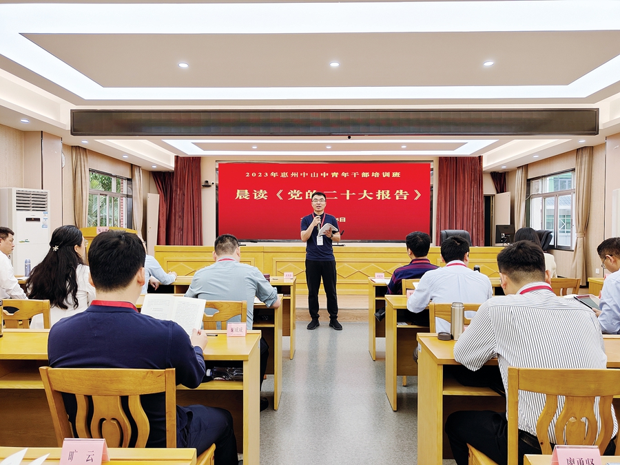 3月24日,開學(xué)第二天的上午8時30分,惠州中山中青班學(xué)員一起齊讀黨的二十大報告,在晨讀聲中,開啟了新一天的學(xué)習(xí)。接著,省委黨史研究室主任楊建偉從新時代新成就、新征程新任務(wù)、新境界新征程等三個方面,為學(xué)員全面解讀黨的二十大報告。下午,廈門市委黨校科研與決策咨詢處處長、教授王剛又為學(xué)員作“學(xué)好用好《共產(chǎn)黨宣言》”專題輔導(dǎo)。學(xué)員們的培訓(xùn)緊張而充實。