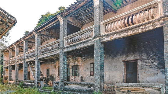 至今,新作塘還保留著較為完好的中共博羅第二任縣委機關(guān)駐地遺址。該遺址位于烏欖園村小組,是一棟兩層騎樓建筑,外觀頗為壯觀,內(nèi)部卻因年久失修有多處破損,部分墻體坍塌。據(jù)李藝威介紹,這一大樓距今已有200多年歷史,占地500平方米,是黨領(lǐng)導(dǎo)下的革命活動地點,新中國成立后一度作為中學(xué)、公社用地。