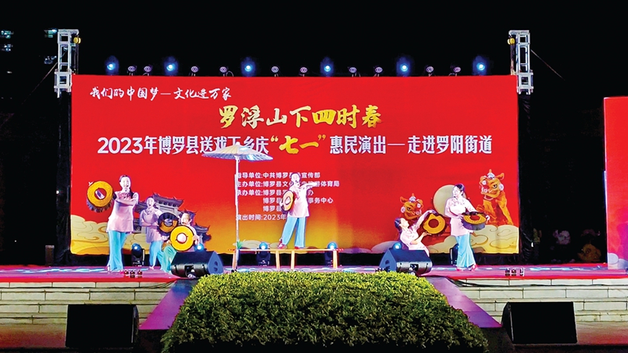 惠州日?qǐng)?bào)訊 (記者侯婉怡 通訊員陳勛)“我和我的祖國,一刻也不能分割,無論我走到哪里,都流出一首贊歌……”日前,博羅縣縣城文化廣場歌聲陣陣,掌聲、歡呼聲不斷,“羅浮山下四時(shí)春”2023年博羅縣送戲下鄉(xiāng)慶“七一”惠民演出首站走進(jìn)羅陽街道。演出以本土戲充當(dāng)重頭戲,現(xiàn)場,一個(gè)個(gè)融入了本土特色的非遺表演、紅色歌曲、流行舞等精彩節(jié)目輪番登場,為廣大老百姓送去“家門口”的文化盛宴。