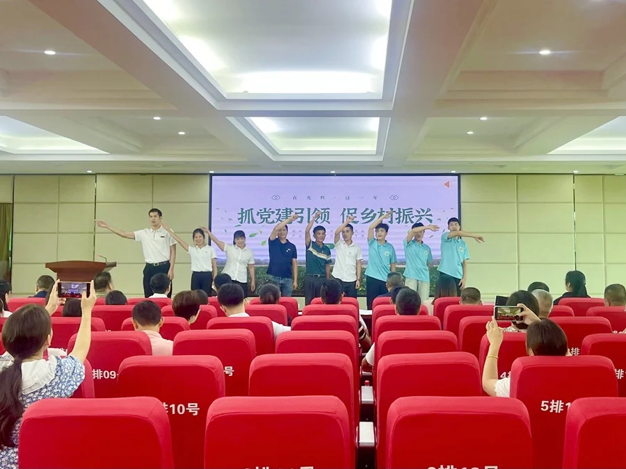 活動(dòng)現(xiàn)場(chǎng),村書(shū)記、“兩委”干部或儲(chǔ)備干部等參賽選手從黨建工作的經(jīng)驗(yàn)做法、制度機(jī)制、工作模式等方面,聚焦產(chǎn)業(yè)振興、人才振興、文化振興、生態(tài)振興等,詳細(xì)介紹各村基本情況、發(fā)展成效及工作亮點(diǎn),通過(guò)視頻、圖文、解說(shuō)匯報(bào)、才藝展示等形式,多維度展現(xiàn)抓黨建促鄉(xiāng)村振興的工作成效。光輝村“第一書(shū)記”還帶領(lǐng)在村里開(kāi)展社會(huì)實(shí)踐的大學(xué)生志愿者們登臺(tái)一展歌喉,將現(xiàn)場(chǎng)氛圍推向高潮。