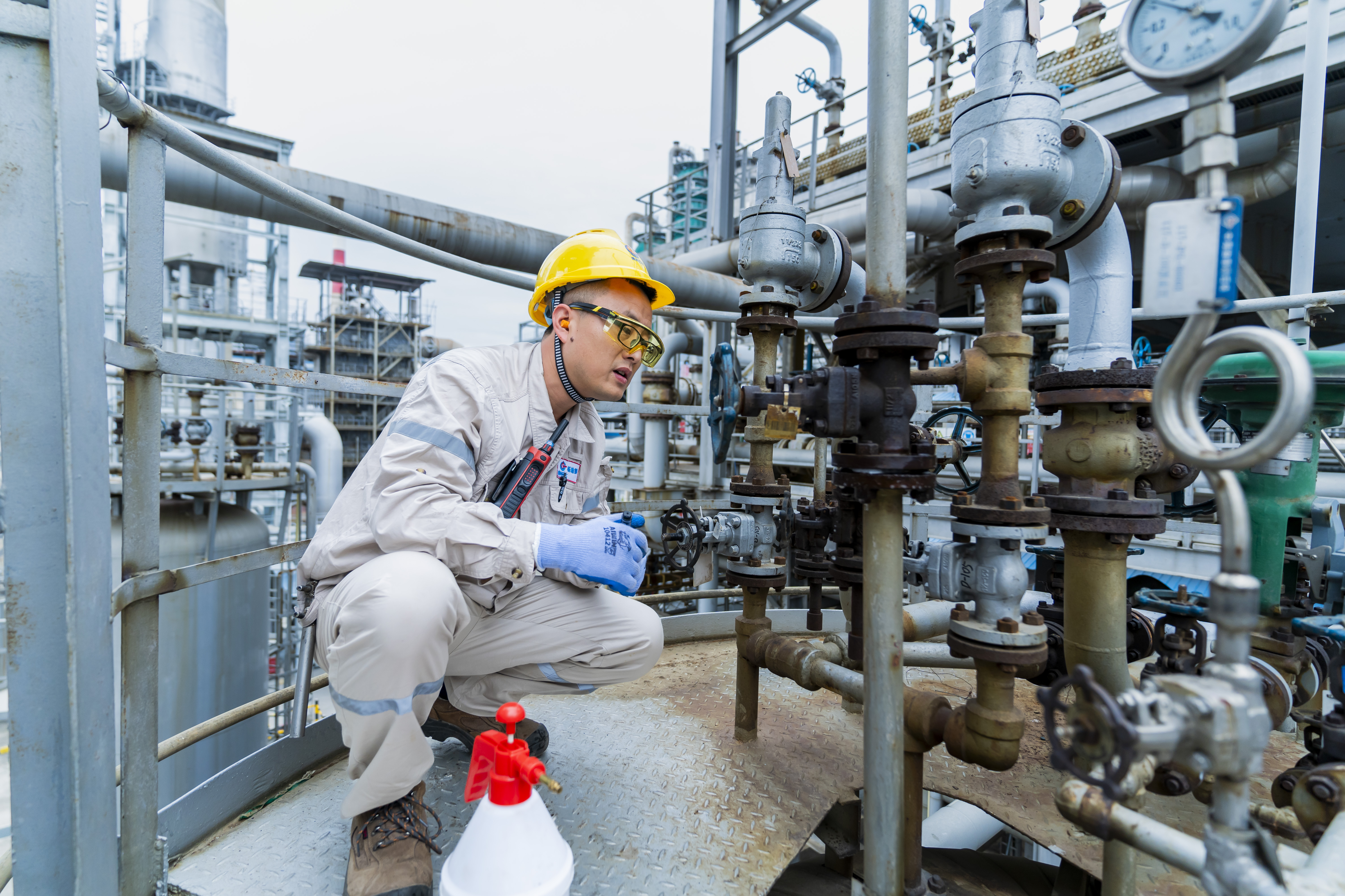 中海油惠州石化員工開展管線氣密性檢查。 惠州日報(bào)記者匡湘鄂 通訊員鄭奕璇 攝