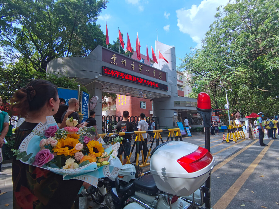 2022年6月,家長手捧鮮花等孩子出考場。今日惠州網(wǎng)資料圖