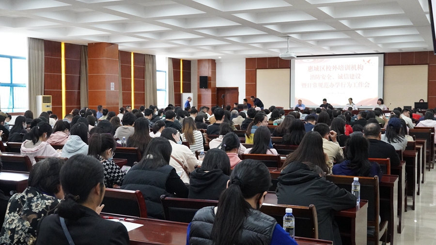 11月16日,惠州市惠城區(qū)教育局通過線上+線下的方式組織開展校外培訓(xùn)機(jī)構(gòu)消防安全管理培訓(xùn)會(huì),幫助大家全面了解國(guó)家關(guān)于消防安全工作的要求、培訓(xùn)機(jī)構(gòu)消防安全工作形勢(shì),并部署消防安全大排查大整治工作,300余家機(jī)構(gòu)負(fù)責(zé)人現(xiàn)場(chǎng)學(xué)習(xí),約2000名機(jī)構(gòu)從業(yè)人員通過直播參加培訓(xùn)。