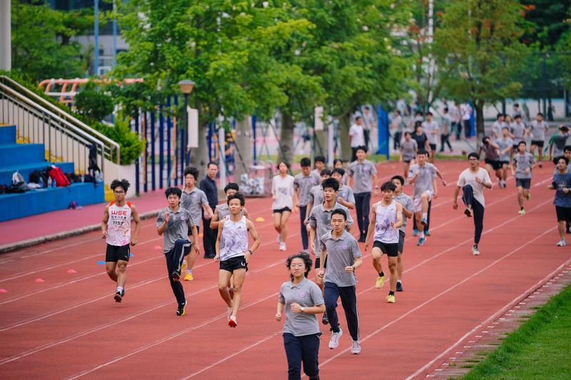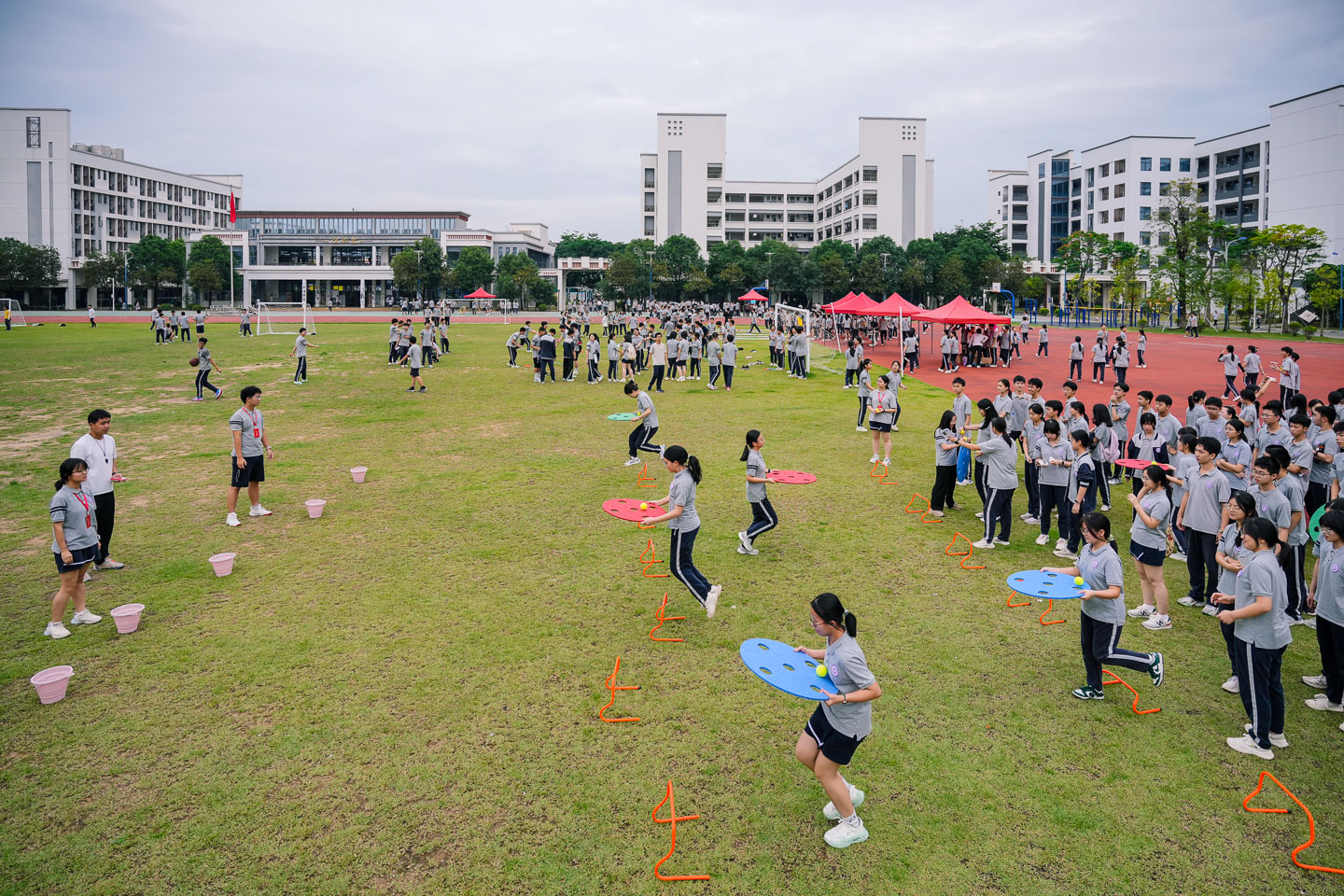 在惠州中學(xué)的操場上,每天下午五點(diǎn)總會響起此起彼伏的加油聲。高一年級的“20人21足”比賽正如火如荼進(jìn)行著,綁著護(hù)腕的同學(xué)們喊著整齊的口號向前沖刺;隔壁場地,高二學(xué)生正進(jìn)行飛盤對抗賽,陽光下旋轉(zhuǎn)的飛盤劃出一道道優(yōu)美弧線;教學(xué)樓里,幾個男生借著課間10分鐘比拼引體向上,汗水浸透的校服刻印著青春的勛章。