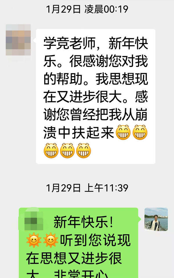 “在找你之前,我學(xué)習(xí)很差,只考了專科,經(jīng)常哭泣。學(xué)習(xí)這件事讓我很害怕,很煩,不知道該怎么辦。找你做了催眠后,這些都改變了。我現(xiàn)在留學(xué)讀研究生,每個(gè)學(xué)期都有一科要閉卷考試,全部要用筆寫(xiě)英文問(wèn)答。爸爸知道我學(xué)習(xí)很差,英語(yǔ)又不是很好,擔(dān)心我考不過(guò)。但是我都過(guò)了,沒(méi)有掛科。對(duì)我來(lái)說(shuō),這是個(gè)很大的進(jìn)步,以前我都不敢想這些事情。”