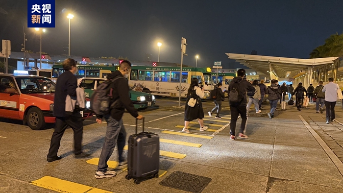 中央廣播電視總臺記者在口岸現(xiàn)場看到,全面恢復(fù)通關(guān)的首批旅客正在從香港入境內(nèi)地,整體通關(guān)情況安全、有序、順暢。
