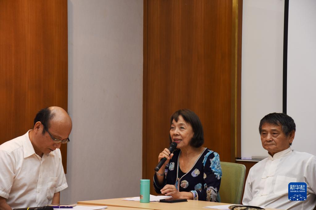 11月6日,臺(tái)灣知名作家、陽(yáng)明大學(xué)(現(xiàn)陽(yáng)明交通大學(xué))退休教授張曉風(fēng)(中)在“歷史教育新三自運(yùn)動(dòng)協(xié)會(huì)”記者會(huì)上發(fā)言。新華社記者 劉斐 攝