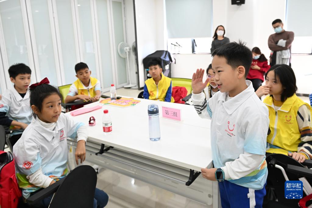 11月18日,在深圳羅湖區(qū)婦女兒童活動(dòng)中心,深港兒童議事會(huì)的兒童議事員們分享在外實(shí)踐時(shí)遇到的對(duì)兒童友好和不友好的地方。新華社記者毛思倩攝