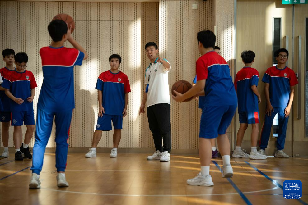 11月12日,澳門(mén)中華總商會(huì)附設(shè)青洲中學(xué)體育老師梁駿朗帶領(lǐng)學(xué)生進(jìn)行籃球訓(xùn)練。新華社發(fā)(張金加攝)