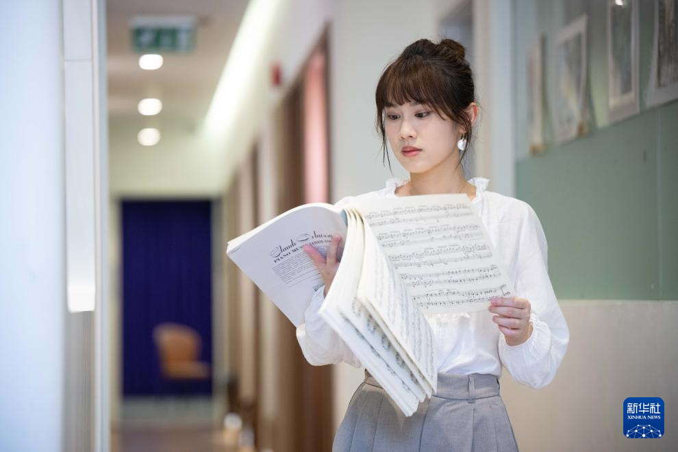 11月12日,澳門(mén)青年音樂(lè)家陳宜在看琴譜。新華社發(fā)(張金加攝)