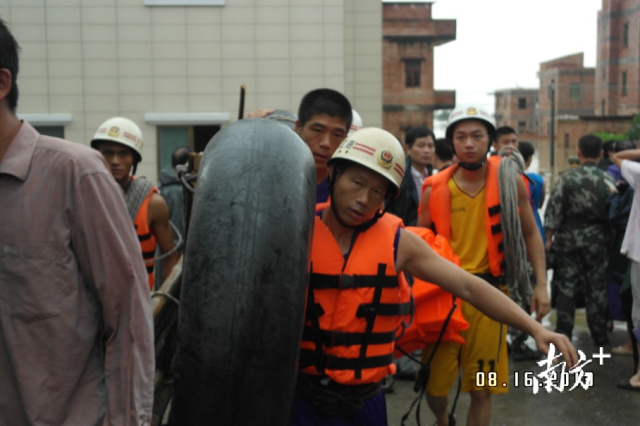 張志添(左二)參與洪澇災(zāi)害救援。
