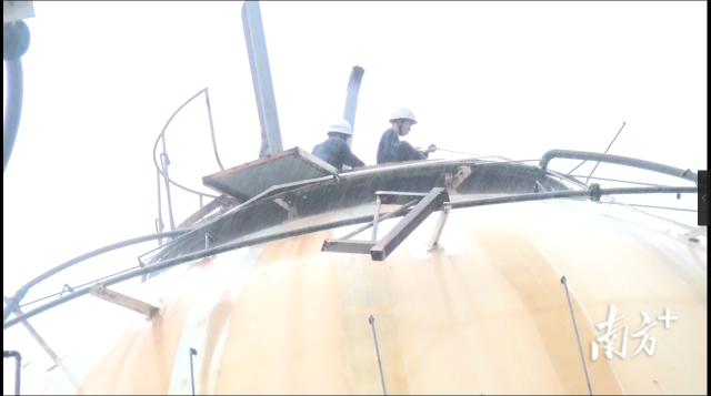“我的經(jīng)驗(yàn)多一些,處置成功率會(huì)高一點(diǎn),讓我?guī)ш?duì)深入泄漏區(qū)吧。”張志添回憶,當(dāng)時(shí)有3個(gè)罐體同時(shí)發(fā)生液相氣相泄漏,泄漏口徑小,泄口壓力大、加上石油氣爆炸極限低,爆炸威力強(qiáng)。“消防員必須深入泄漏區(qū)實(shí)施處置,但在這個(gè)過(guò)程中,很容易因吸入泄漏物質(zhì),引起急性中毒。再加上27米的球形罐體檢查梯已經(jīng)被臺(tái)風(fēng)吹塌,且風(fēng)力沒(méi)有減弱的趨勢(shì),想要攀爬到罐頂實(shí)施堵漏非常難。”盡管經(jīng)驗(yàn)老到,但這樣的難題他也是頭一次遇到。
