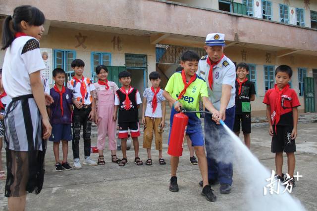 張志添在教學(xué)生如何使用滅火器。